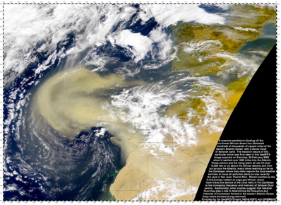والعاصفة الرملية أو ما يسمى بالجدار الترابي هي مجموعة حبيبات رملية معدنية المصدر في الأغلب عالقة في الهواء بارتفاع قد يصل إلى عدة مئات من الأمتار وبعرض عشرات وأحياناً مئات الكيلومترات، وبدرجة تركيز تختلف وفقاً: لجهة القدوم، سرعة الرياح، جفاف المصدر وقد يصل التركيز إلى الآلاف من الحبيبات لكل سنتيمتر مكعب كما الحال في عاصفة يوم الثلاثاء 2 مايو. كما تقوم الرياح بنقل كميات هائلة عشرات الملايين من أطنان الرمال كل عام وتقذفها في أماكن مختلفة فوق الأرض وأحيانا فوق البحر. وربما نقلت الرياح تلك الحبيبات من الرمل وخاصة الدقيقة جداً عشرات الآلاف من الكيلومترات من مصدرها الأصلي كما يحدث عندما تُصدر الصحراء الكبراى الواقعة شمال أفريقيا بعضاً من ذراتها الترابية إلى قارة أوروبا التي قد يصل إلى شمالها وأحياناً باتجاه الغرب فوق المحيط الأطلسي (شكل رقم 2).